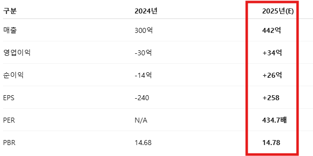 • 실적 대비 PER 너무 높음 (434.7배)