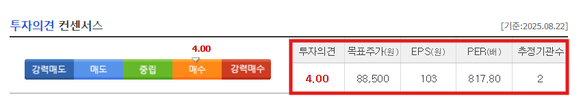 📌 현재 주가(103,500원)는 이미 목표가를 상회했으나, 정책 모멘텀 + 실적 개선을 감안할 때 추가 상향 가능성이 있습니다.