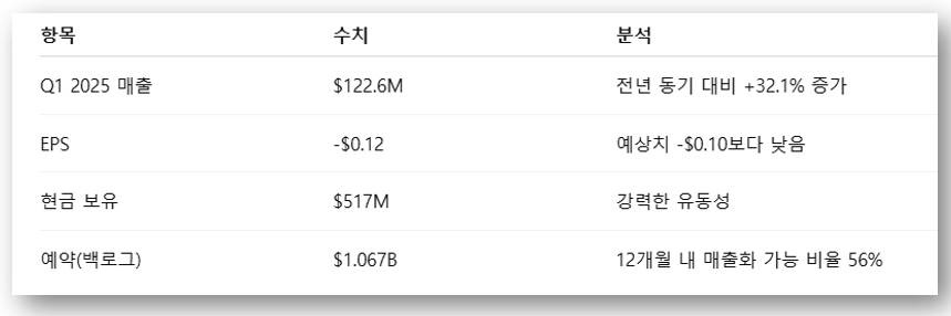 - 2025년 1분기 매출: 1억 2,260만 달러로 예측치 상회