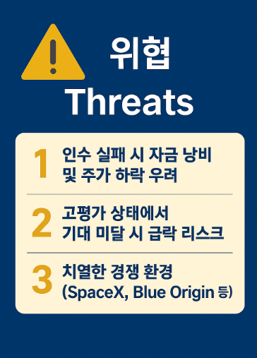 • 치열한 경쟁 환경 (SpaceX, Blue Origin 등)