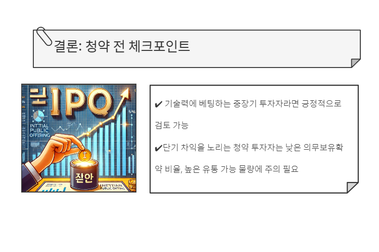 - 단기 차익을 노리는 청약 투자자는 낮은 의무보유확약 비율, 높은 유통 가능 물량에 주의 필요