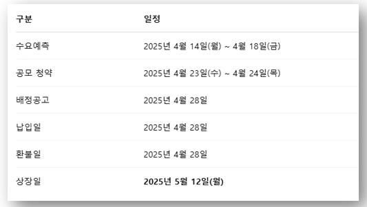 📅 청약일은 4월 23일~24일, 상장은 5월 12일입니다.