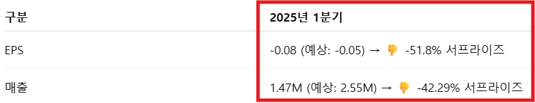 📌 매출과 이익 모두 시장 기대치를 하회, 실적 모멘텀은 약한 편.