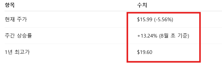 📈 기술적 관점에서 13.5~14달러 구간은 지지선으로 유효. 이탈하지 않으면 $18~20 재돌파 시도 가능성 있음.