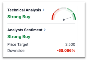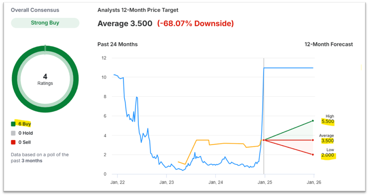 | 목표 주가 범위 | ✔️ 최저: $2.00 ✔️평균: $3.50 ✔️최고: $5.50 |