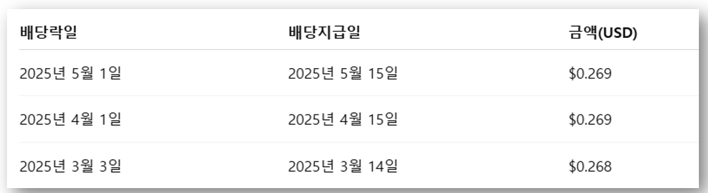 📌 최근 3개월 배당 정보:
