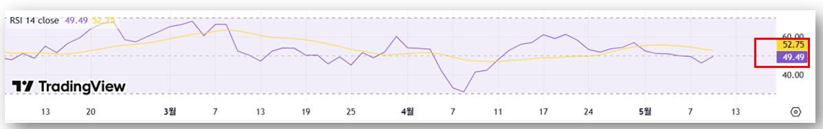 - 현재 49.49로, 중립 구간에서 방향 전환 대기 상태