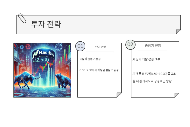 - 중장기 투자: AI 신약 성공 가능성을 고려해 10~12달러까지 보유 가능