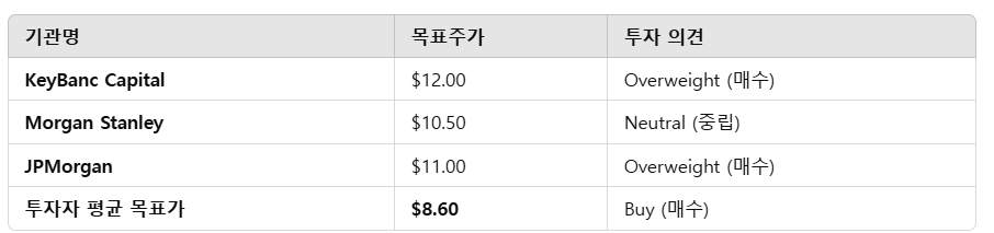 - 중기적: 기관 목표가 평균 $8.60을 고려할 때 1년 내 $8~$9대 회복 가능성 존재.