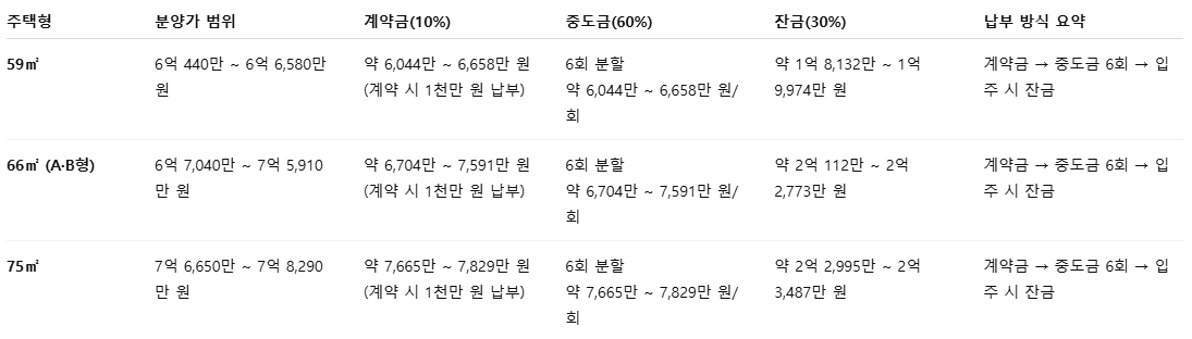 • 중도금(60%): 6회 분할 (2026.03.31 ~ 2027.11.30)