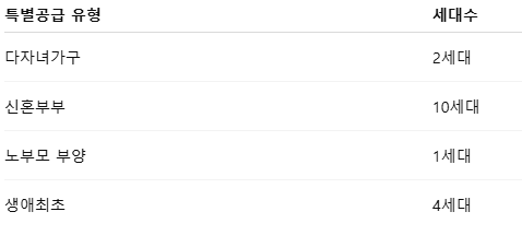 • 선정 방식: 총점제(자녀수, 무주택기간, 거주기간 등)