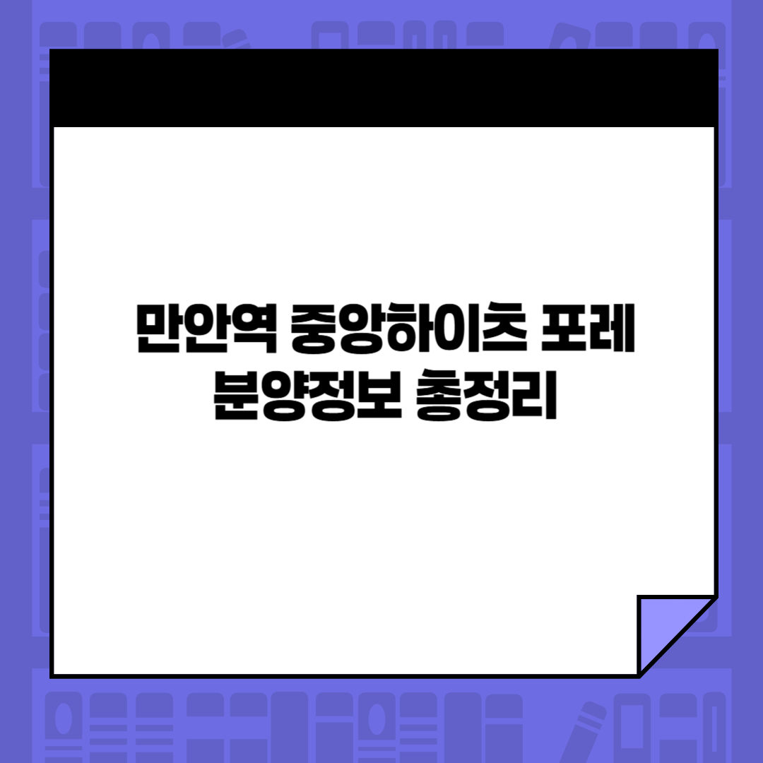 만안역 중앙하이츠 포레 분양정보 총정리|청약자격·분양가·특별공급까지