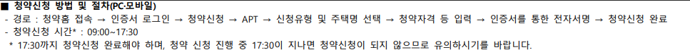 • 절차: 로그인 → 주택형 선택 → 청약 정보 입력 → 인증서 서명 → 신청 완료