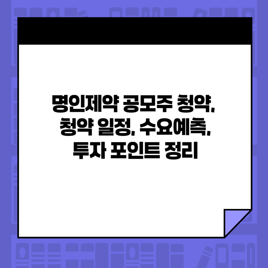 이번 포스팅에서는 명인제약의 기업 개요, 청약 공모 정보, 투자 포인트와 리스크, 청약 일정에 대해 알아볼테니, 참고바래요!
