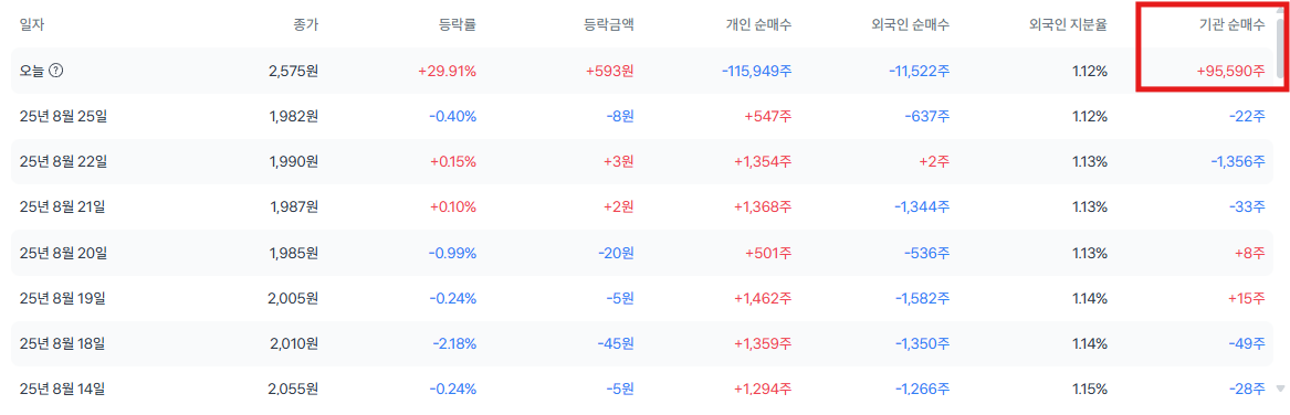 - 종가: 2,575원 (+29.92%)