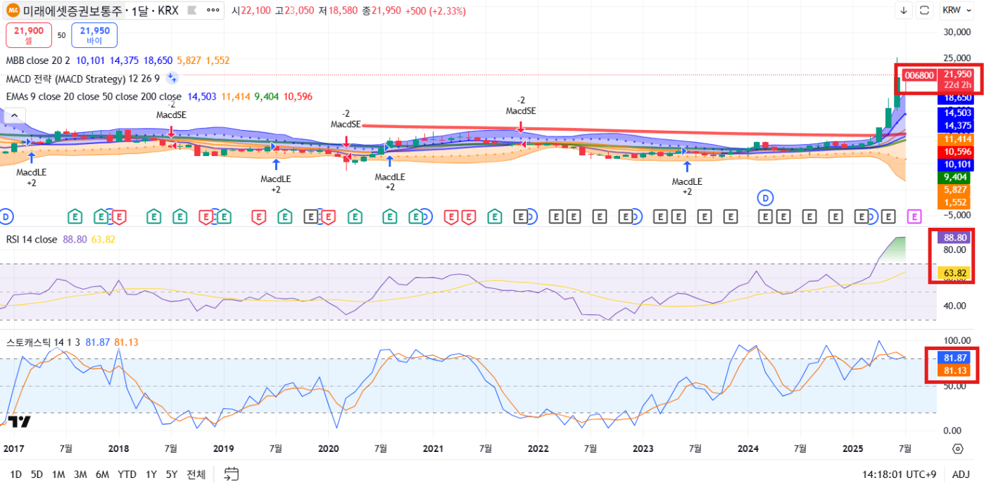 2. 미래에셋 증권 차트 분석