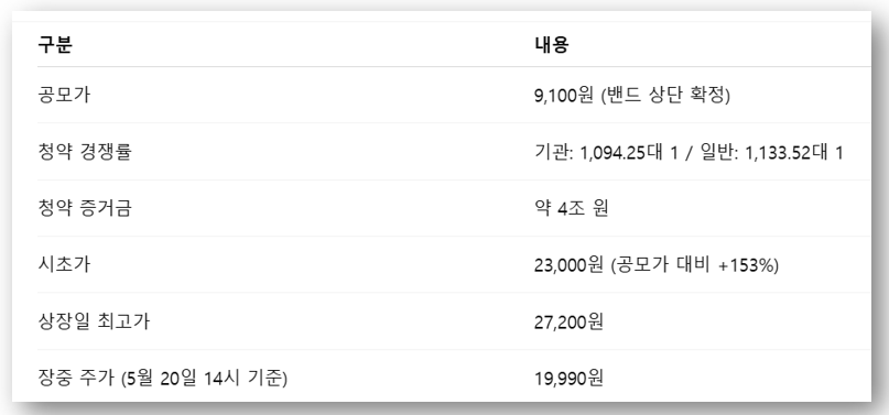 상장일 오전에는 ‘따상상’에 근접했지만, 오후 들어 일부 차익 실현 매물로 인해 주가는 다소 하락세를 보였습니다.
