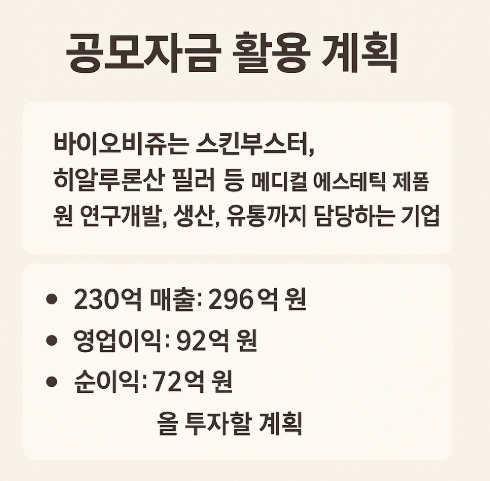 바이오비쥬는 이번 IPO를 통해 총 273억 원의 자금을 조달하였으며, 이 중: