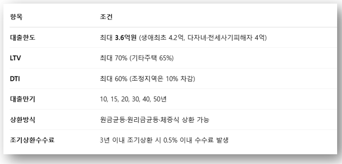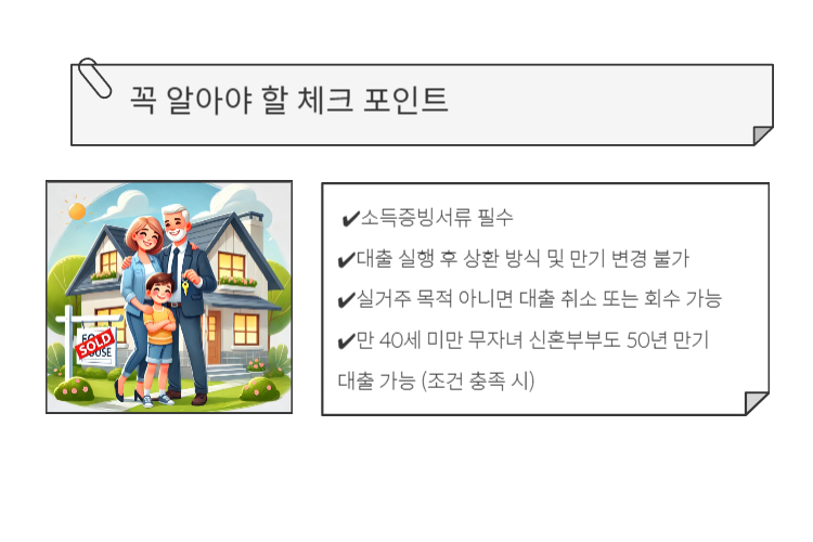 - 만 40세 미만 무자녀 신혼부부도 50년 만기 대출 가능 (조건 충족 시)