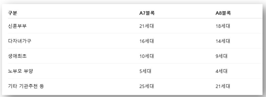 1. 부천대장지구 A7·A8블록 청약 개요 비교