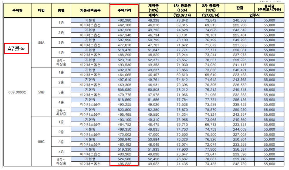 ✅ A7 블록 분양가