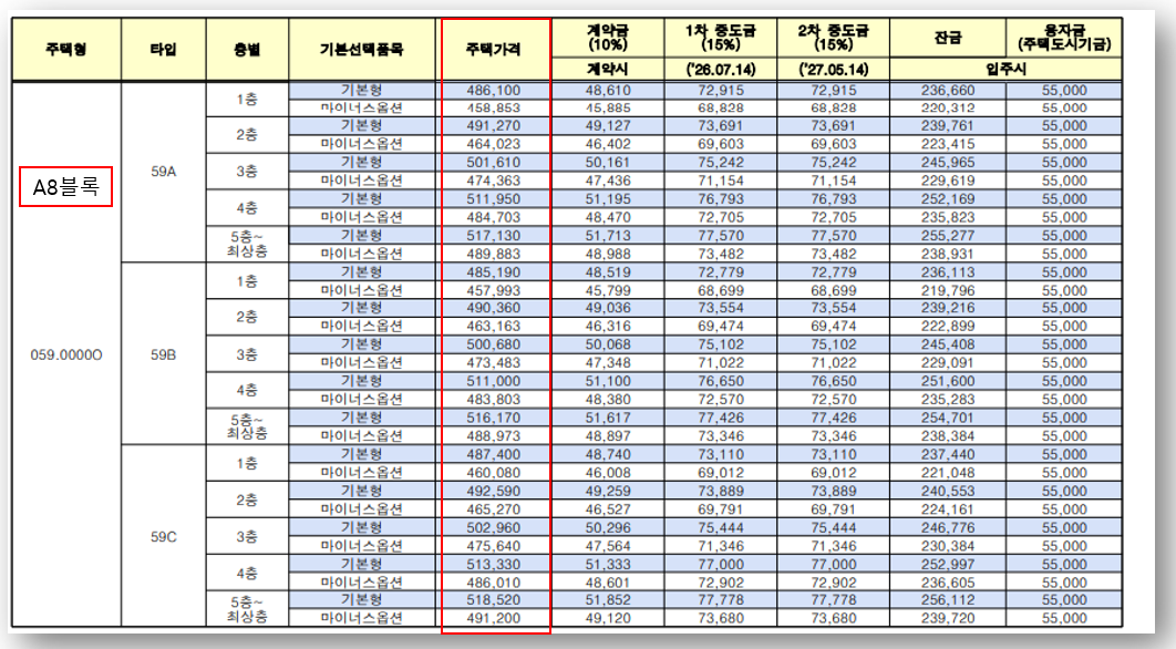 분양가, 발코니 확장비, 마이너스 옵션, 청약자격까지 한눈에 확인하세요.