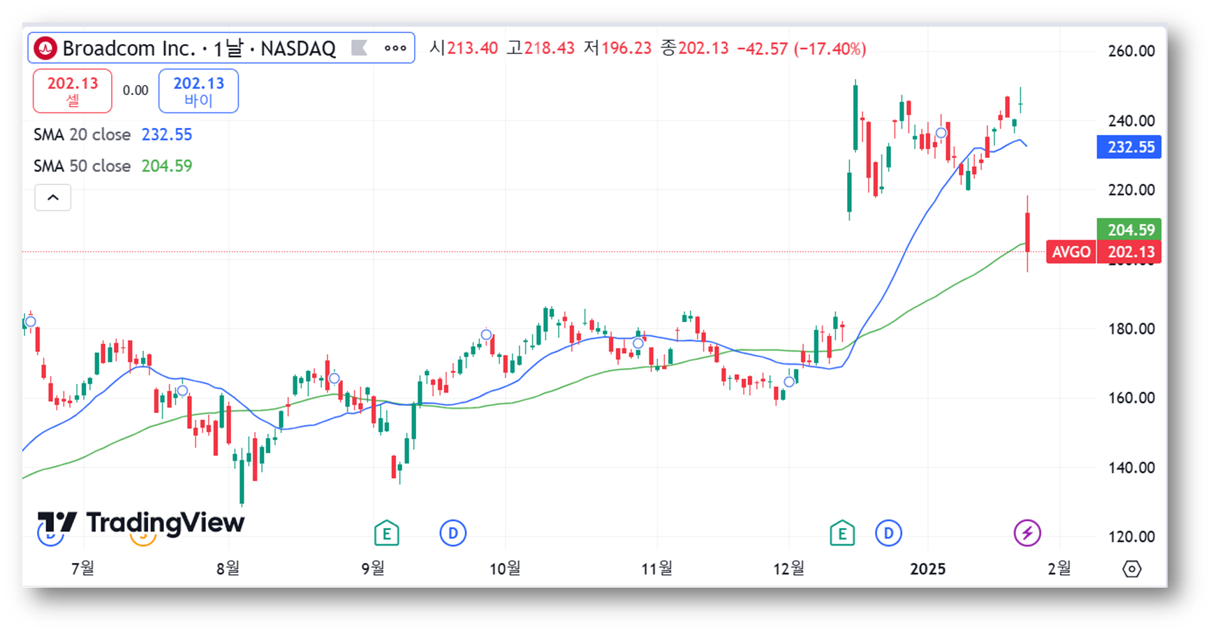 1. 브로드컴 주가 폭락 소식 및 목표 주가