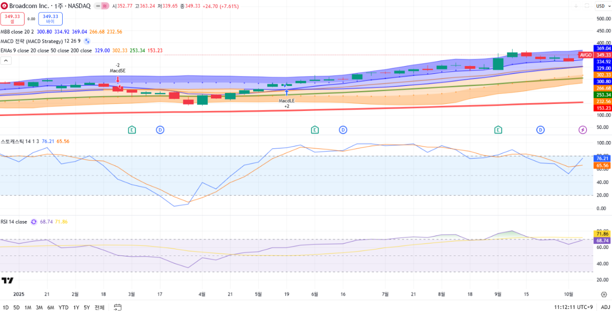 브로드컴은 최근 오픈AI와의 대형 계약 체결 소식이 전해지며, 또 한번의 급 상승을 했어요, 이번 포스팅에서는 브로드컴의 주가 전망 및 적정 주가 등에 대해 자세히 알아볼게요!
