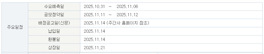 | 11월 공모주 청약 일정 총정리! 추천 종목 및 상장 일정 알아보니 (0) | 2025.10.27 |