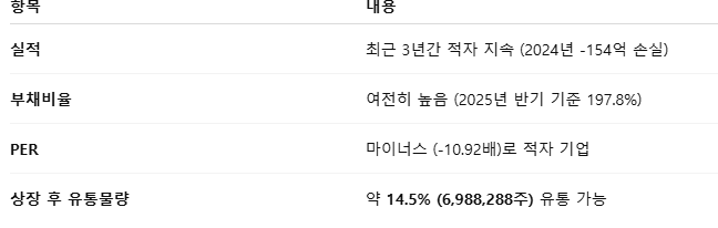 👉 단기 차익 실현 물량이 상장 직후 출회될 가능성 유의