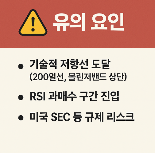 ⚠️ 단기 투자자는 기술적 지표 과열 구간 주의