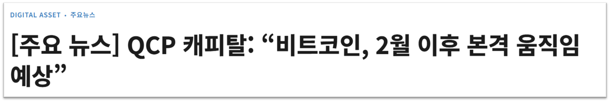[주요 뉴스] QCP 캐피탈: "비트코인, 2월 이후 본격 움직임 예상" | 블록미디어