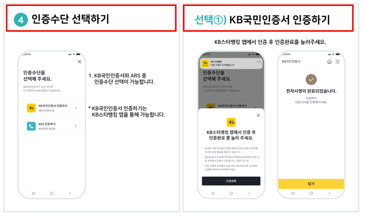 - 인증 절차: 계좌번호 입력 → ARS 인증 or KB 인증서 활용