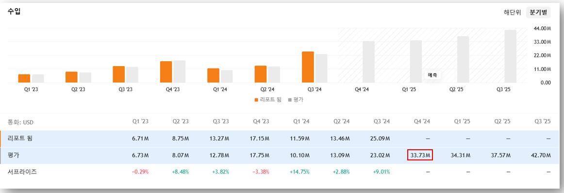 - Q4 2024 예상 매출: 33.73M USD
