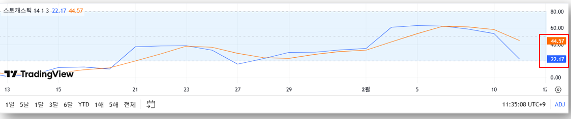 📌 스토캐스틱 지표: 과매도 구간 진입 (반등 가능성)