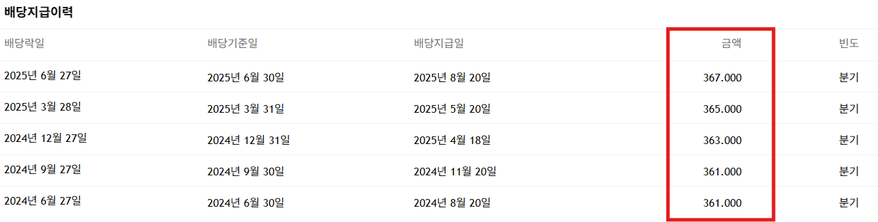 • 다음 배당락일 : 2025년 9월 예정