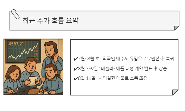 • 7월~8월 초 : 외국인 매수세 유입으로 '7만전자' 복귀