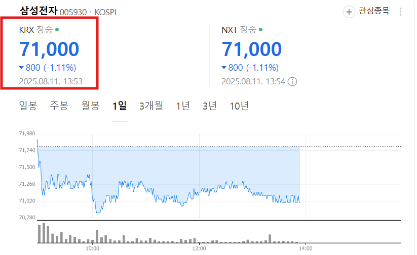 삼성전자 주가는 장중 71,000원대를 기록하고 있습니다.