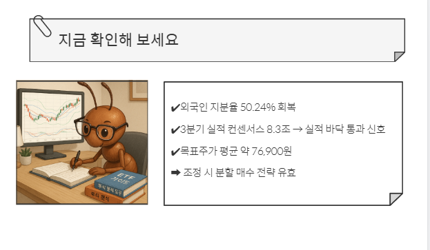 - 3분기 실적 컨센서스 8.3조 → 실적 바닥 통과 신호