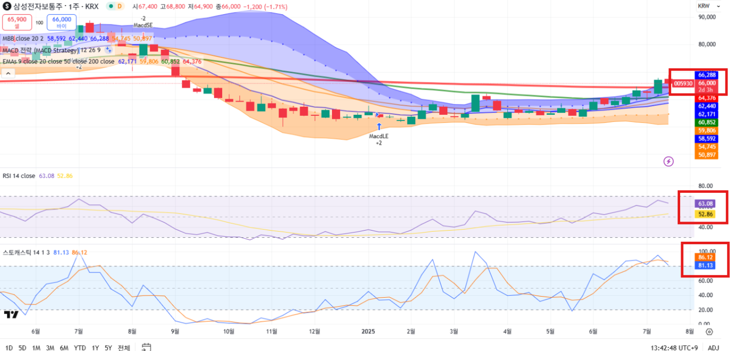 ✔️ 중장기: 실적 회복 + 외국인 매수세 지속 → 7만전자, 8만전자 가능성 유효