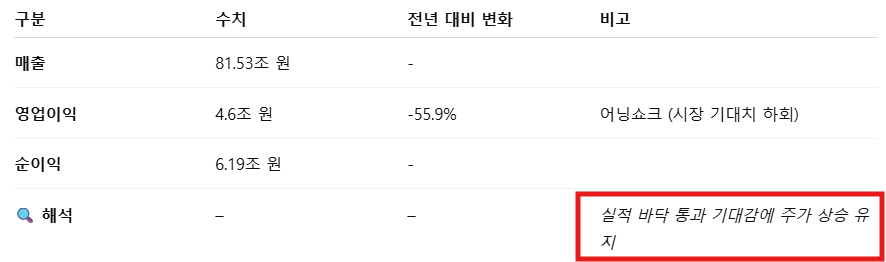 - 영업이익: 4.6조 원 (-55.9%) → 어닝쇼크