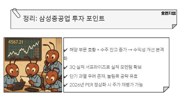 - 저선가 컨테이너선 비중 감소, 고수익 해양 부문 매출 증가 → 수익성 개선