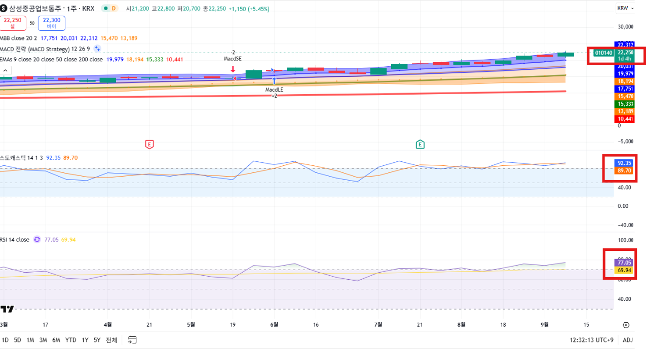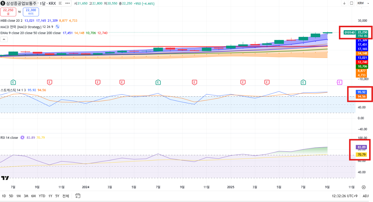 - RSI : 고점 근처에서 움직이고 있으며, 조정 없이 눌림목 구간을 형성 중입니다.