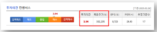 📌 투자의견 평균: 3.94 (매수 의견 유지)