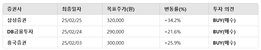 ✔ 현재 주가는 23만 원대에 머물러 있지만, 증권사들은 평균 33만 원대 목표주가를 유지하며 상승 가능성을 보고 있음.