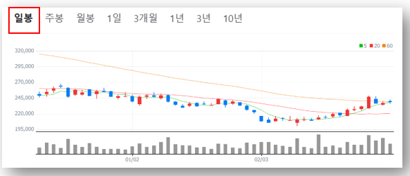 ✅ 최근 5일 이동 평균선(239,000원), 10일 이동 평균선(234,624원) 유지 중