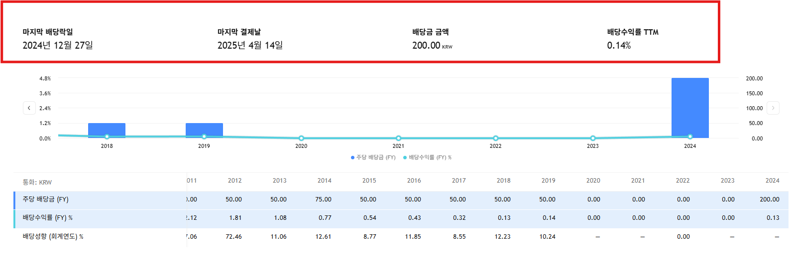 💡 2024년에 배당을 재개했지만, 수익성 악화로 배당 지속 여부는 불투명합니다.