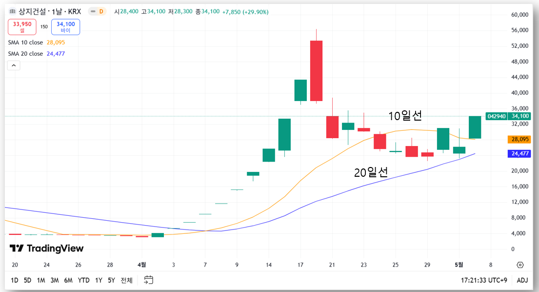 2. 상지건설 차트 분석