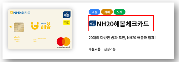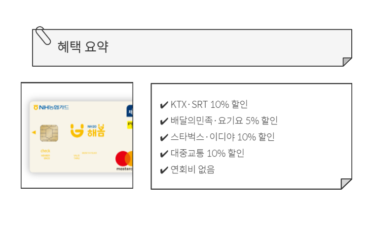 ✔ 여행·KTX·배달 할인 → NH농협 NH20해봄 체크카드