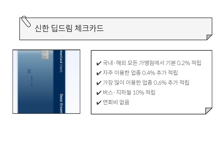 ✔ 적립을 원한다면 → 신한 딥드림 체크카드